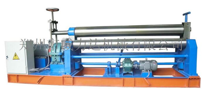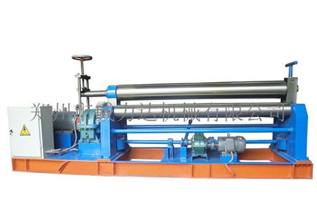 該機為對稱式三輥卷板機,兩下輥為主動固定輥,上輥通過升降絲桿、渦輪、蝸桿在兩下輥對稱中央作上下移動,兩下輥的左、右旋轉和上輥的升降移動均靠電機帶動減速器來完成,并能借助手動離合器把上輥調節成平行或傾斜位置,以適應卷制圓形和錐形工件的需要,渦輪上下配有特種壓力軸承,轉動輕松、省電耐磨。該機集機身、傳動、電器部分為一整體,其結構緊湊、操作方便、便于搬運、安裝和維護。